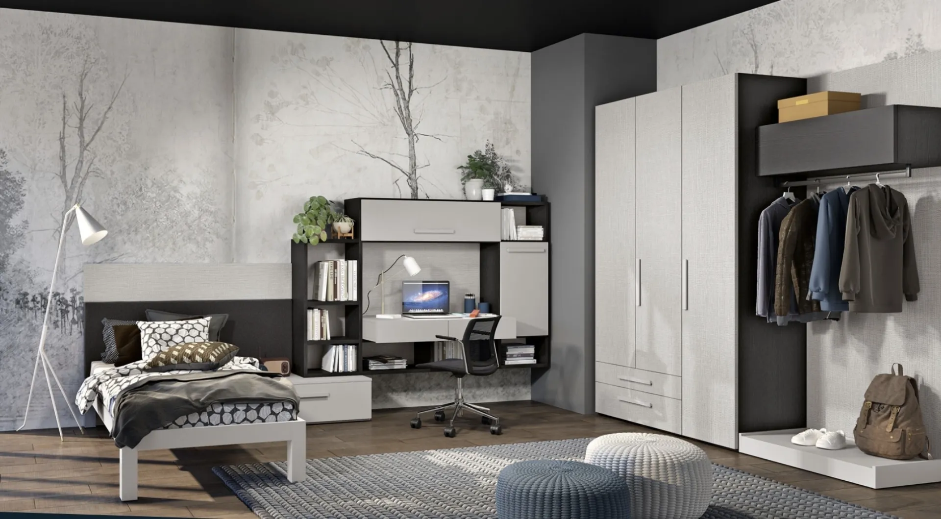 Con questa cameretta Cameretta moodbook 208 Ferrimobili, tra le soluzioni componibili, potrai ammobiliare stanze moderne per ragazzi.