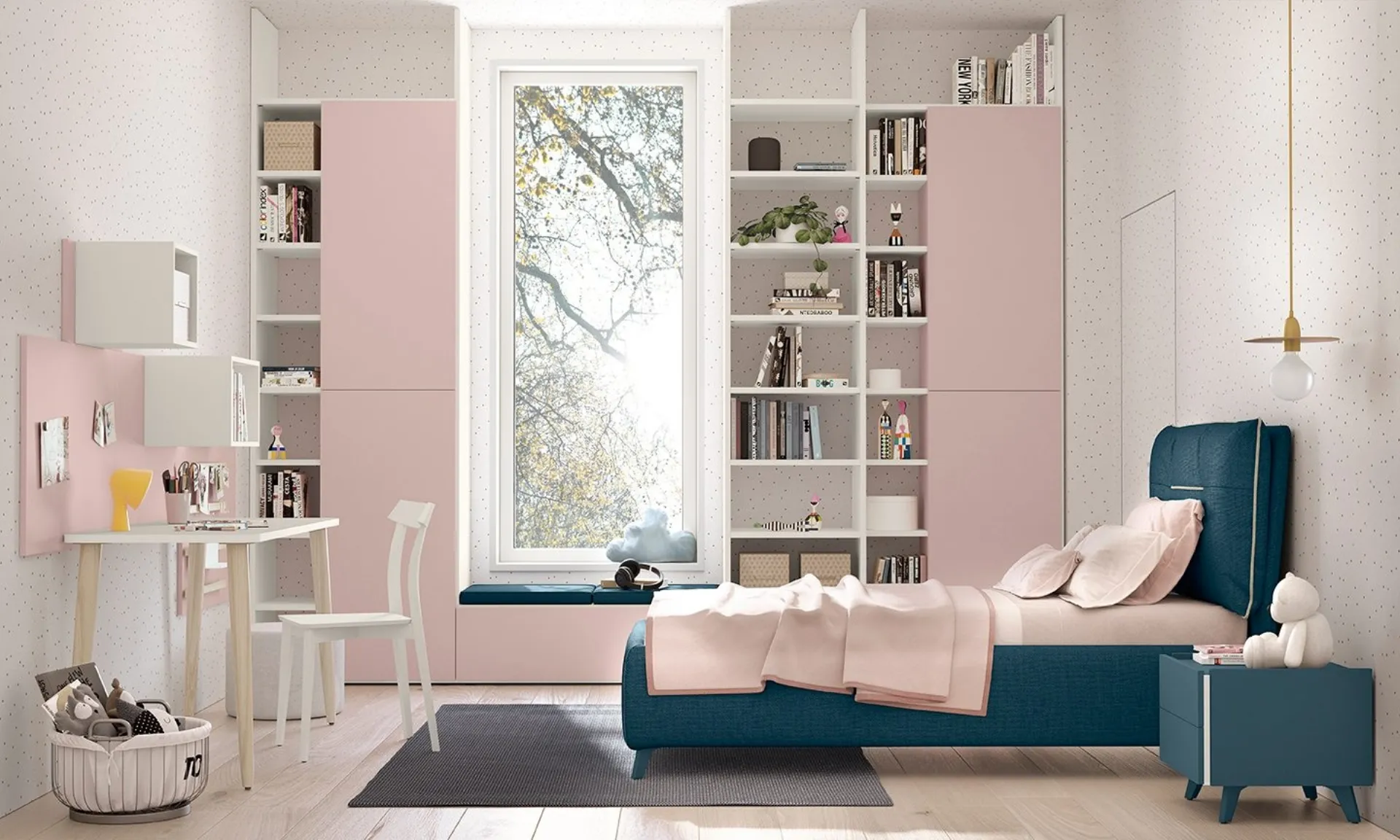 Con questa cameretta Golf K16 Colombini Casa, tra le soluzioni componibili, potrai progettare stanze moderne per bambine.