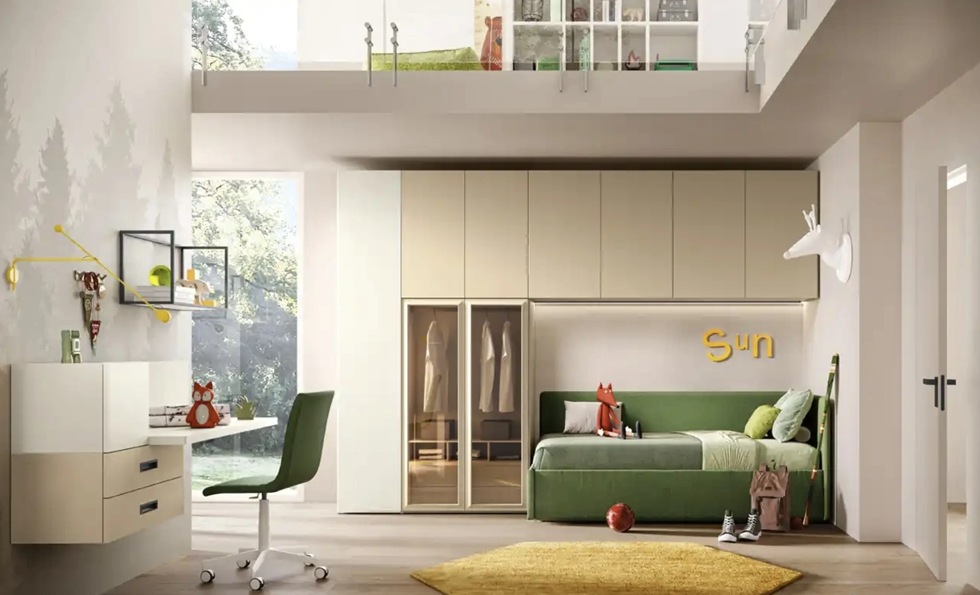 Arreda stanzette moderne con le Camerette a ponte Moretti Compact Camerette! Il modello K111 in melaminico è per bambini.