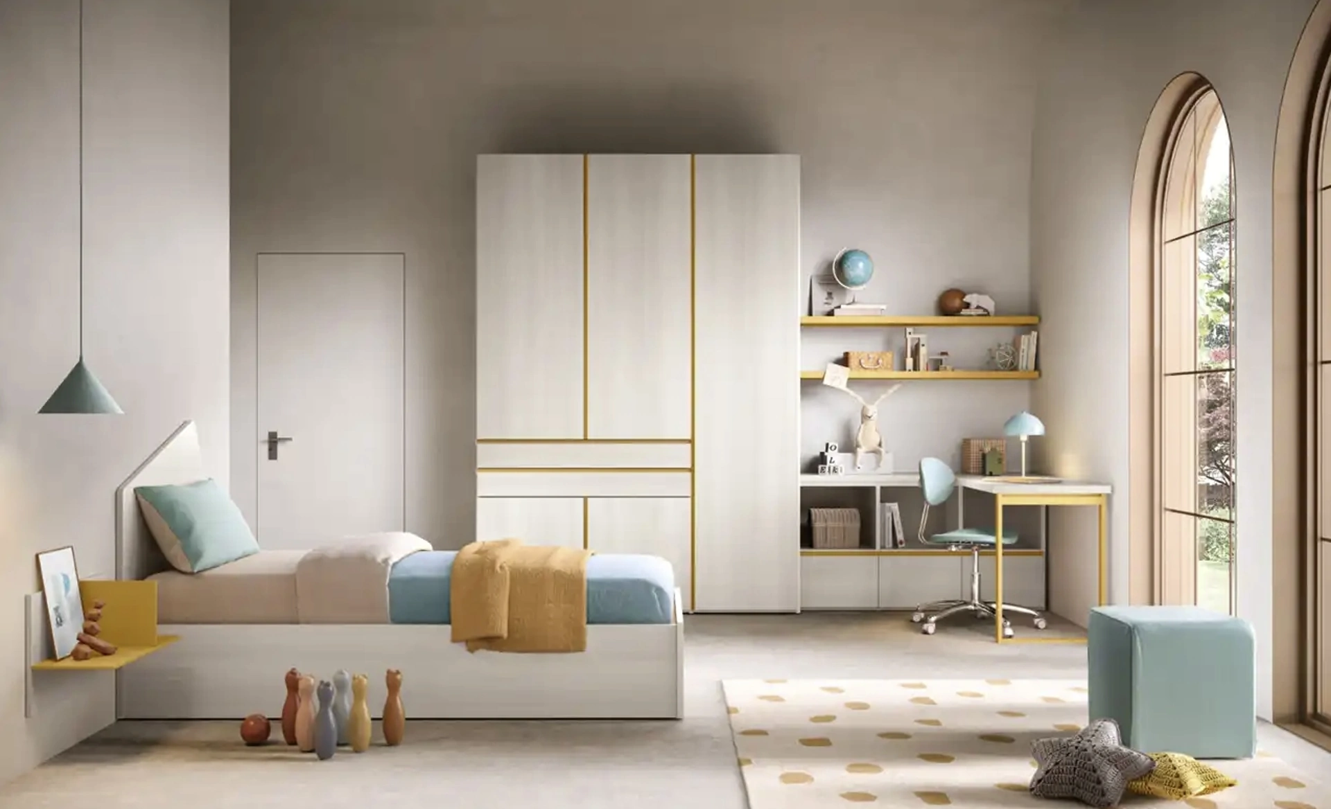 Vieni in negozio e potrai vedere dal vivo tutte le più originali composizioni d'arredo componibili moderne di Moretti Compact Camerette per i più piccoli. Moretti Compact Camerette asseconda lo stile dei piccoli e le necessità dei genitori con le sue Camerette moderne componibili, ideali per esigenze di ogni tipo. Con una composizione arredativa Moretti Compact Camerette, potrai completare con funzionalità e design l'ambiente nel quale i tuoi figli trascorrono gli anni importanti della vita. La Cameretta K113 di Moretti Compact Camerette in melaminico è un ambiente articolato da progettare attentamente, mixando vari accessori su misura.