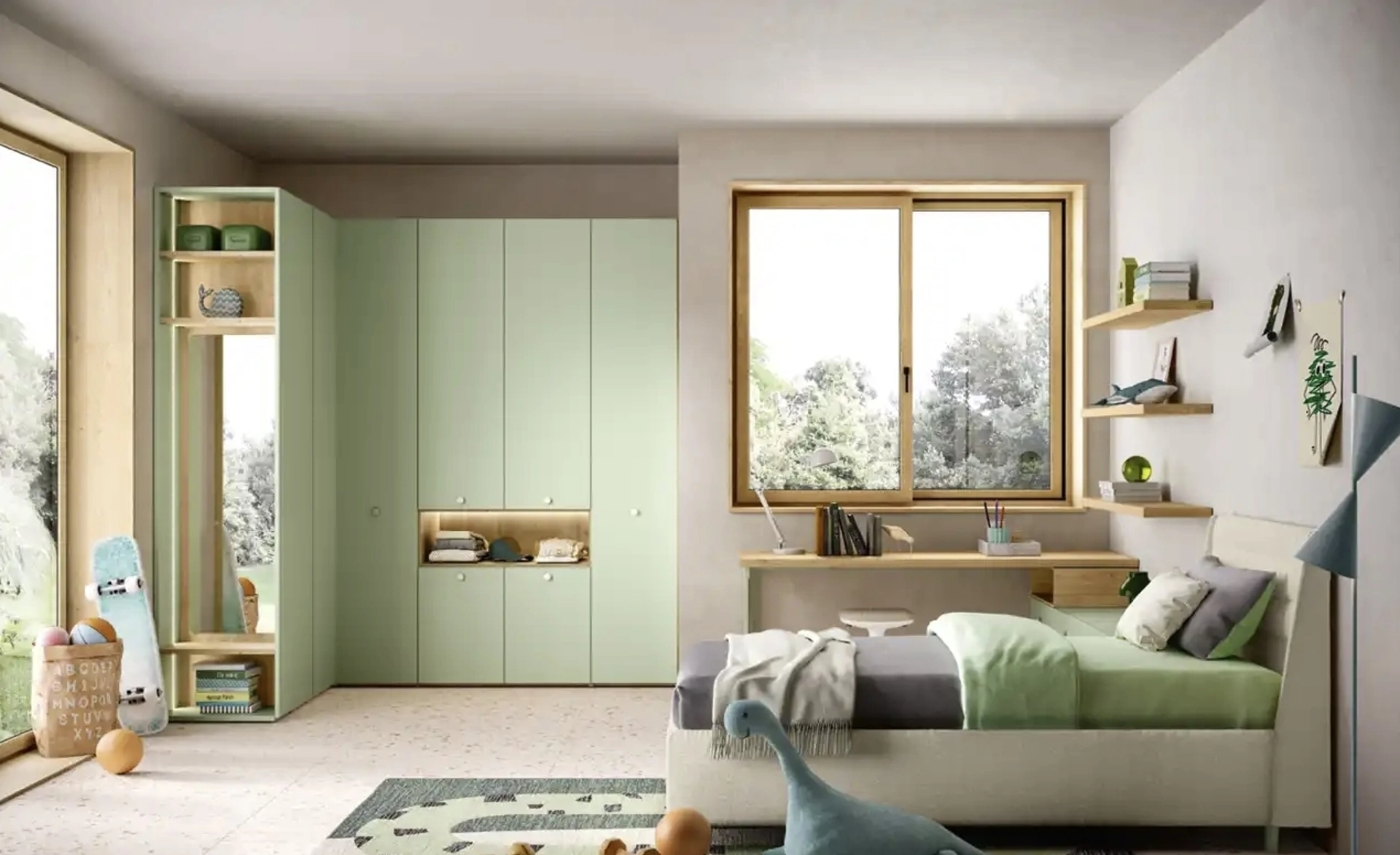 Con questa cameretta K117 Moretti Compact Camerette, tra le soluzioni componibili, potrai progettare stanze moderne per bambini.