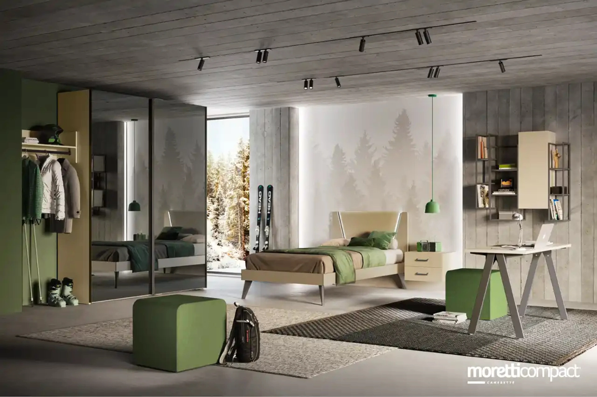 Arreda stanzette moderne con le Camerette componibili Moretti Compact Camerette! Il modello Y116 in melaminico è per ragazzi.