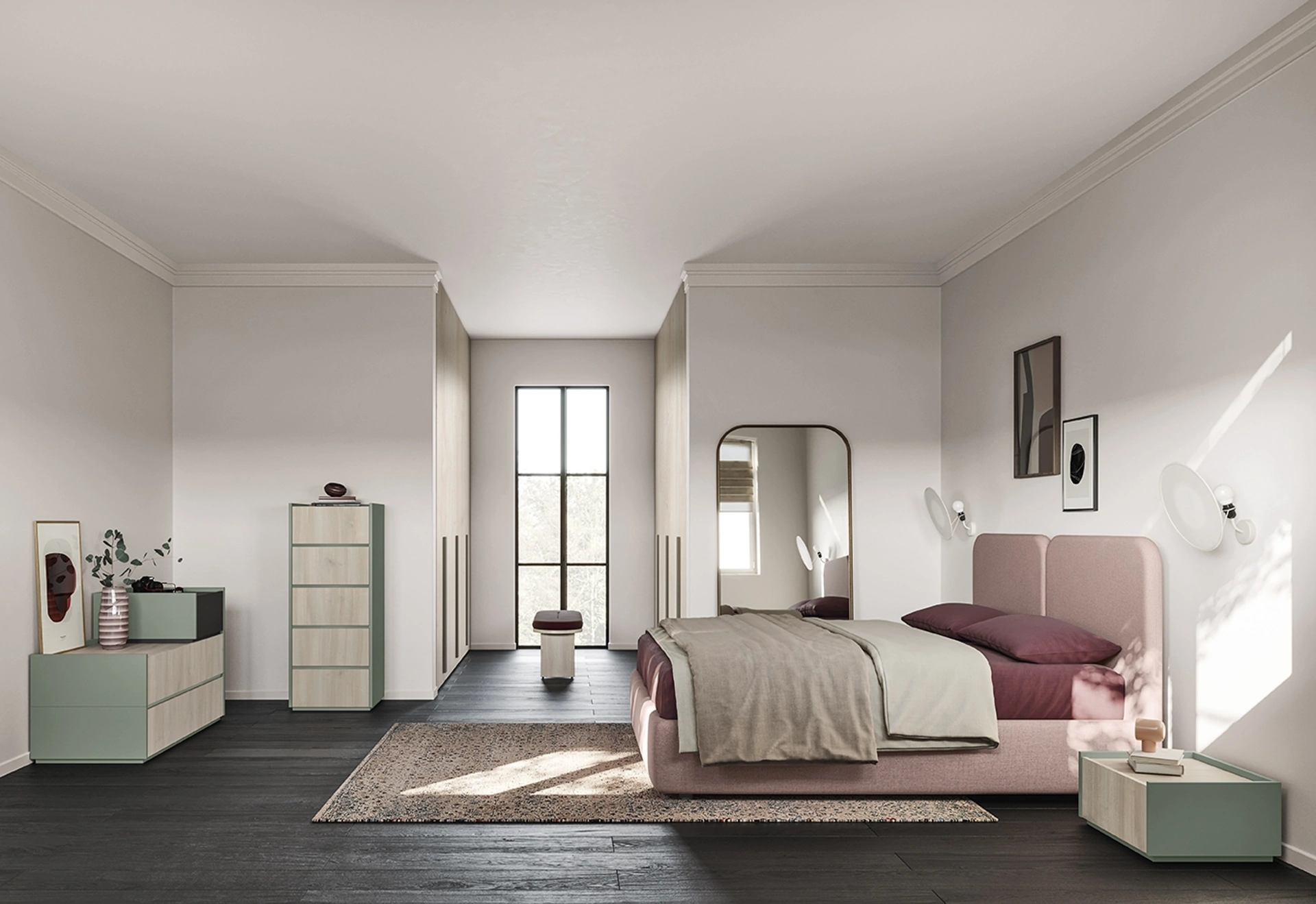 Vuoi ammobiliare la zona notte con Comodini e mobili con cassetti di Colombini Casa? Ecco qui il modello Laguna Gruppo Notte in melaminico per spazi design.