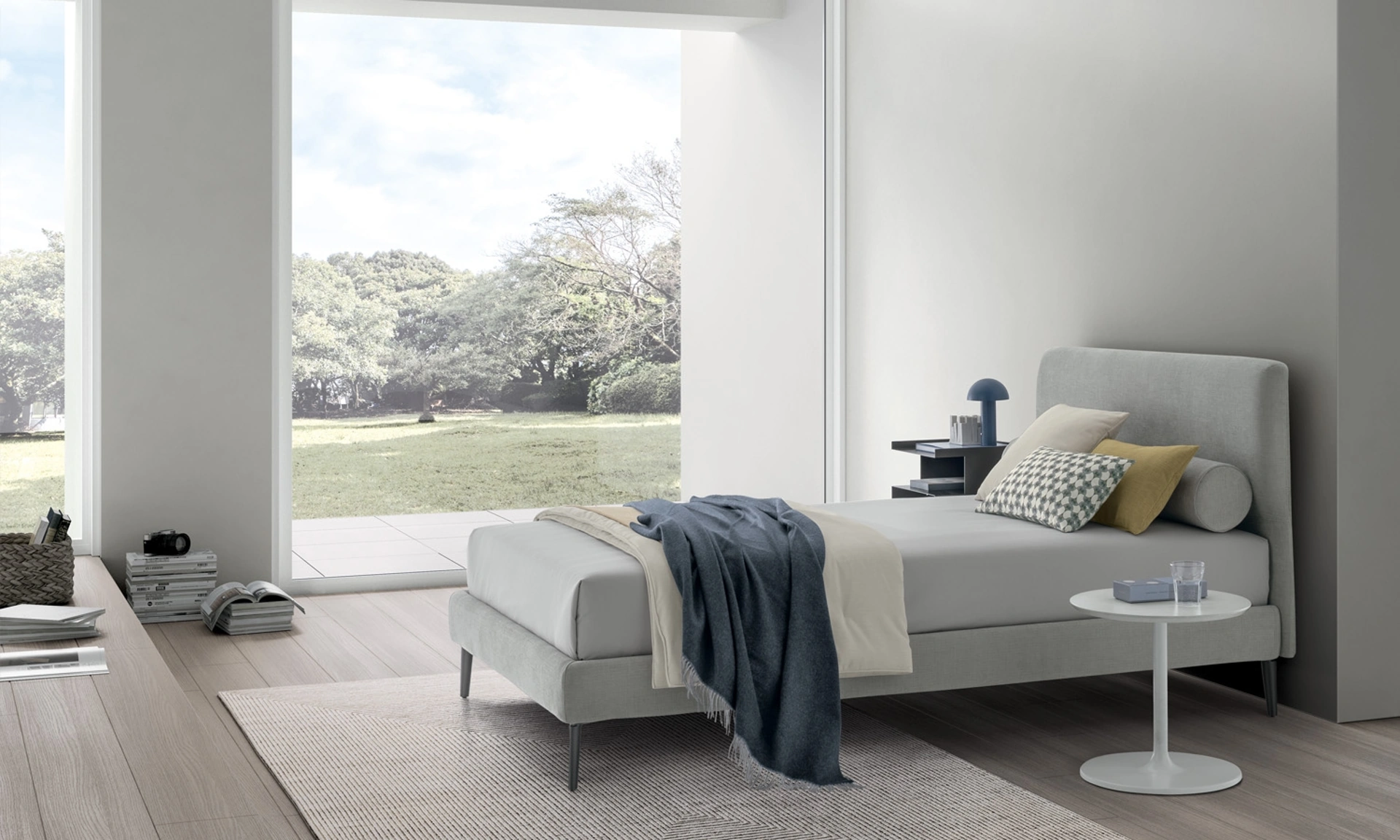 Il letto singolo Benny in tessuto nell'immagine, tra i modelli imbottiti moderni di V&Nice, è perfetto per garantire il sonno più profondo.