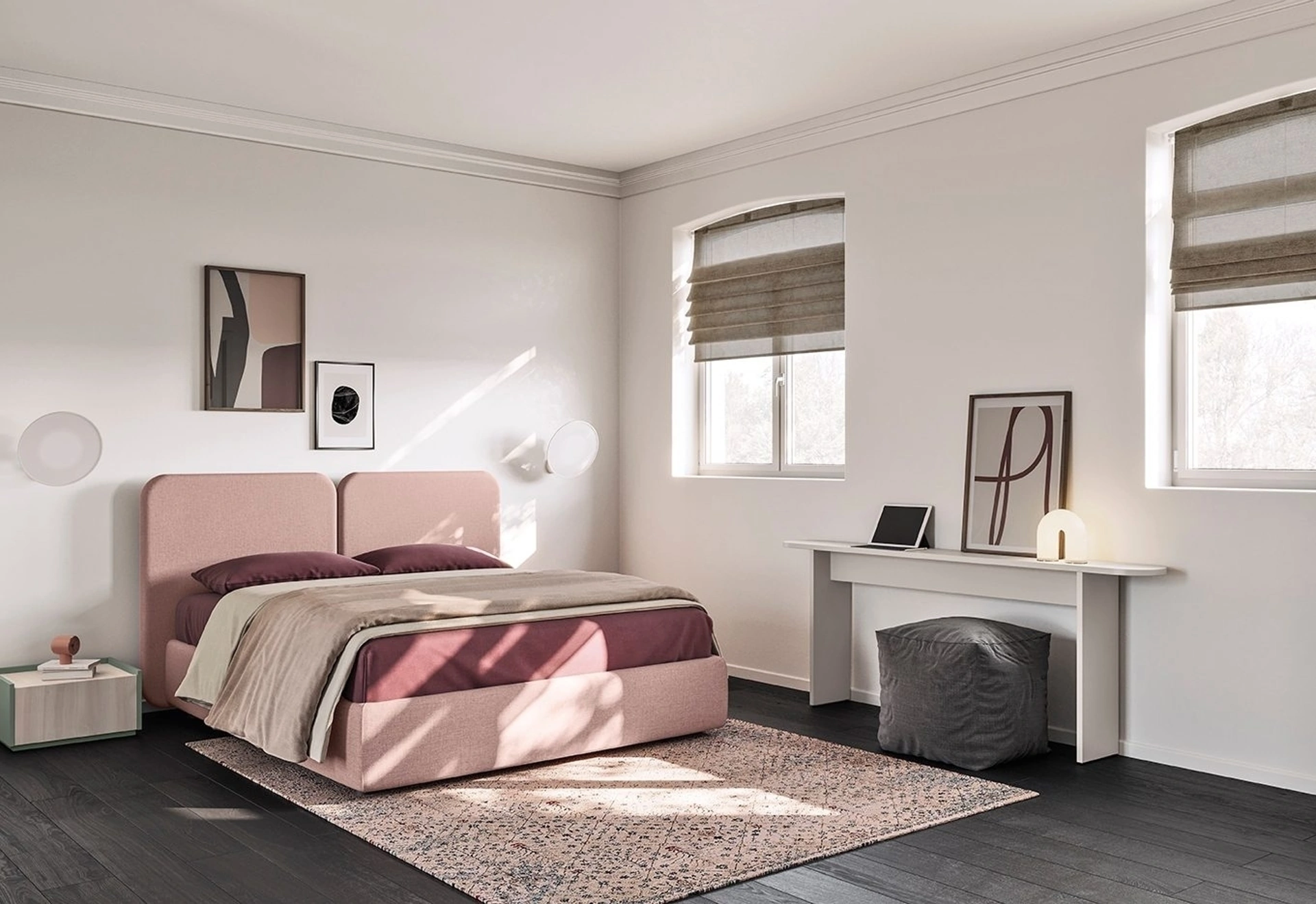 Il letto Alba in tessuto, tra i modelli imbottiti matrimoniali moderni di Colombini Casa, è perfetto per assicurarti il relax totale.
