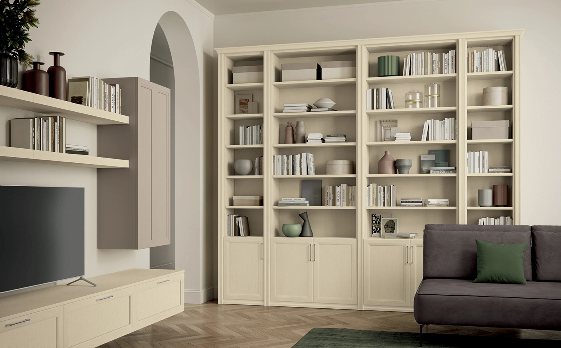 Texture di pregio e linee decise: scopri la libreria Arcadia AS004 di Colombini Casa tra le più originali Librerie classiche a muro.