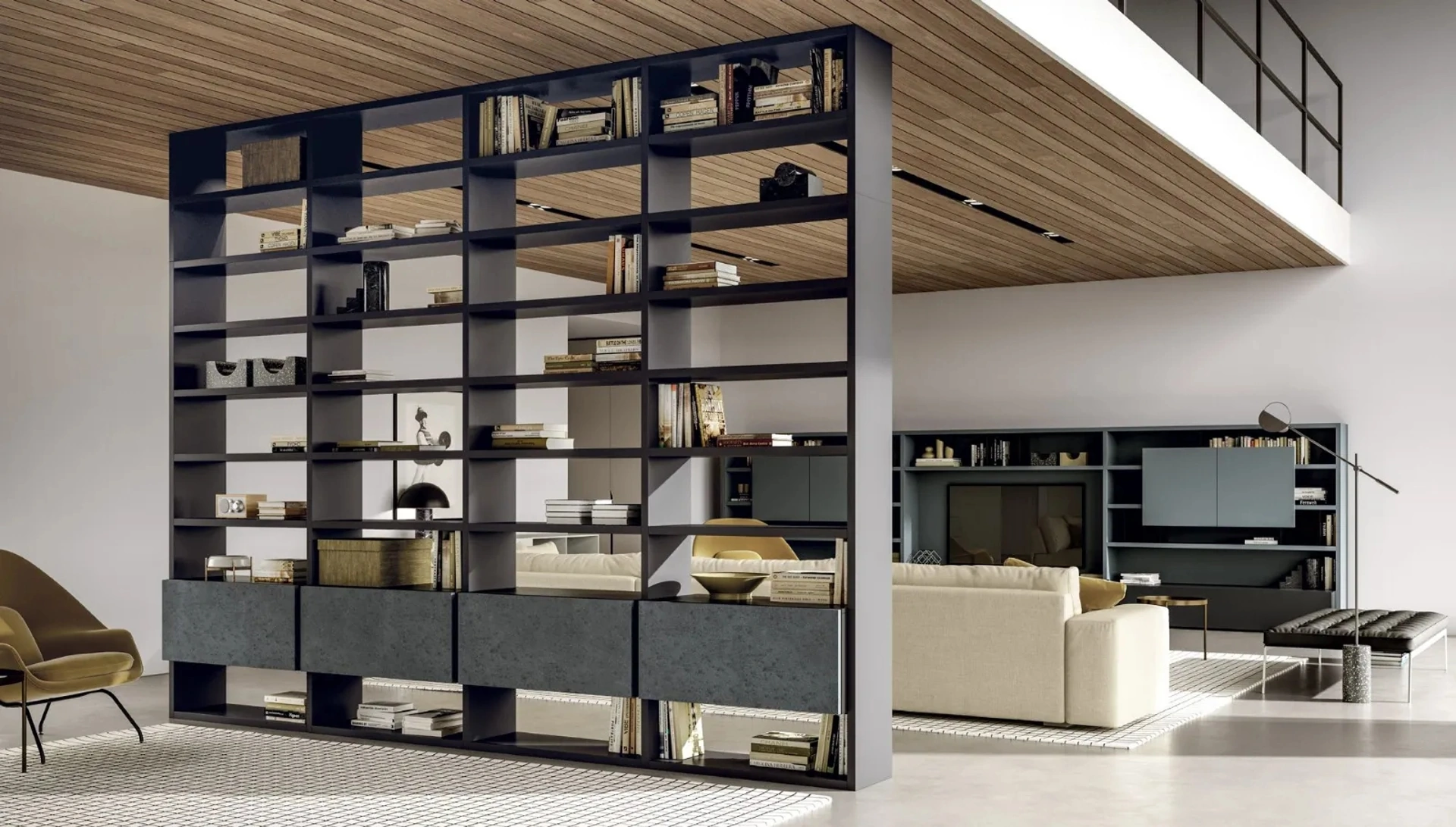 Vuoi rinnovare il soggiorno? Ottieni informazioni sulle librerie moderne divisorie e arreda i tuoi spazi con il modello Line Up 13.