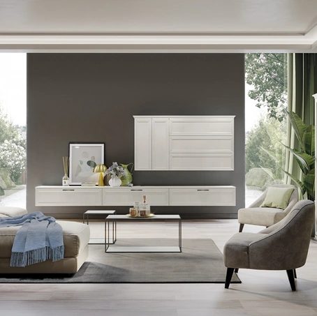 Il living è fulcro delle relazioni, luogo di convivialità e anche di relax quotidiano, dove spesso ospiterai amici e parenti per piacevoli momenti in compagnia, per feste e pranzi. I soggiorni sono il cuore pulsante di ciascuna casa, quindi la scelta dei mobili da predisporre al loro interno è di primo piano per assicurarsi una totale vivibilità, tanto comfort e grandi doti di accoglienza. Decidi con noi in che modo decorare il living dei tuoi desideri: con le nostre Pareti Attrezzate di grande valore estetico, a terra o sospese se lo spazio non è generoso, ottimizzerai gli spazi disponibili impreziosendoli. Nel momento in cui selezioniamo le misure, i materiali e i colori per le nostre Pareti Attrezzate, è bene appurare a quale linea stilistica rifarsi e tenere in conto a quali funzioni risponderà il soggiorno. Mostrare nonché contenere libri e oggettistica di ogni genere non è l’unico compito delle Pareti Attrezzate, difatti esse contribuiscono a organizzare al meglio il locale seguendo una certa linea stilistica, che risolva le tue aspettative. Poiché il living è, in assoluto, il locale dedicato ad attività come relax, convivialità e lavoro, deve essere un luogo bello da vedere, confortevole e attrezzato con praticità.