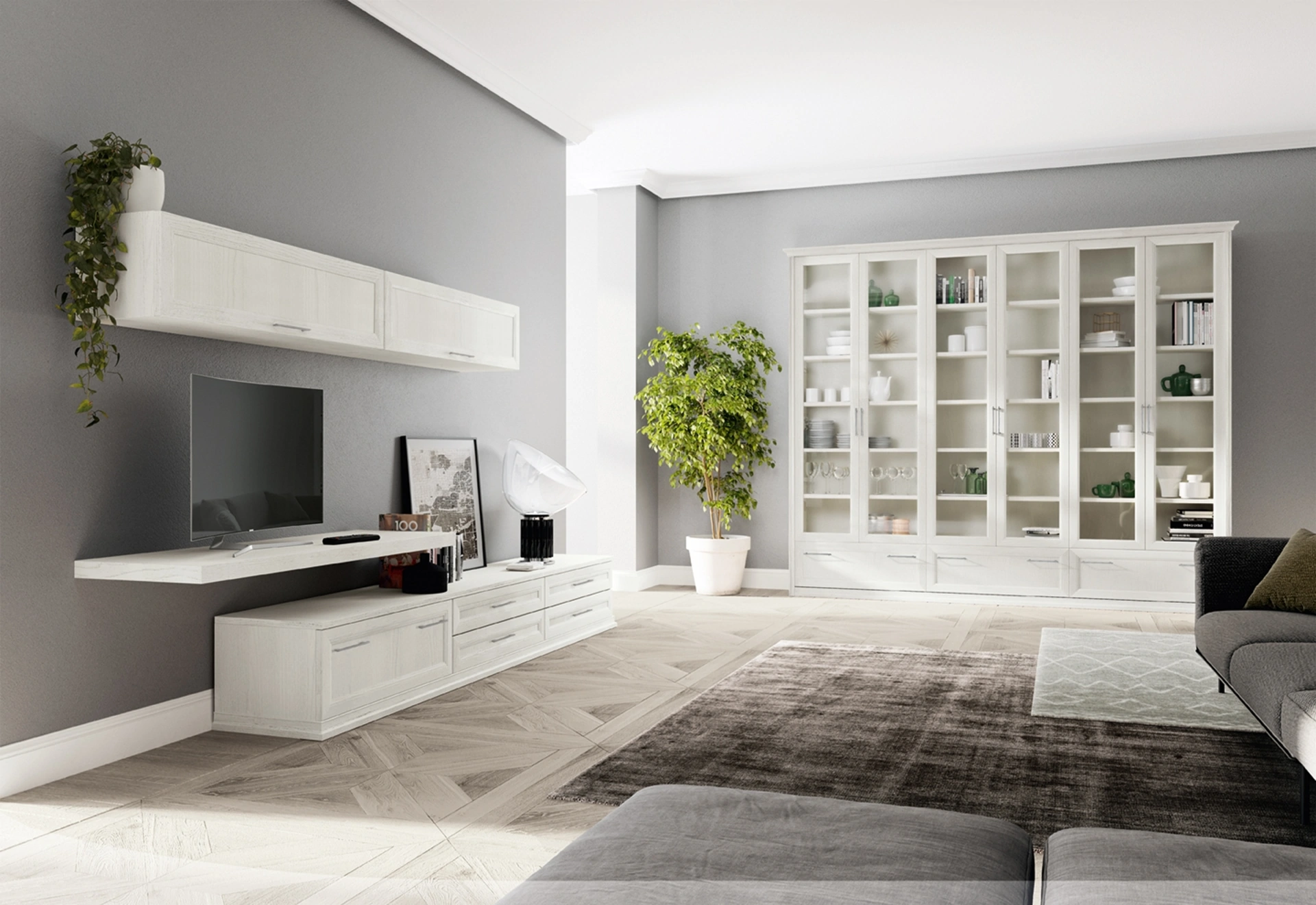 Pareti attrezzate e pensili Colombini Casa: clicca e scopri il modello Arcadia AS020 e potrai arricchire stanze classiche di ogni tipo.