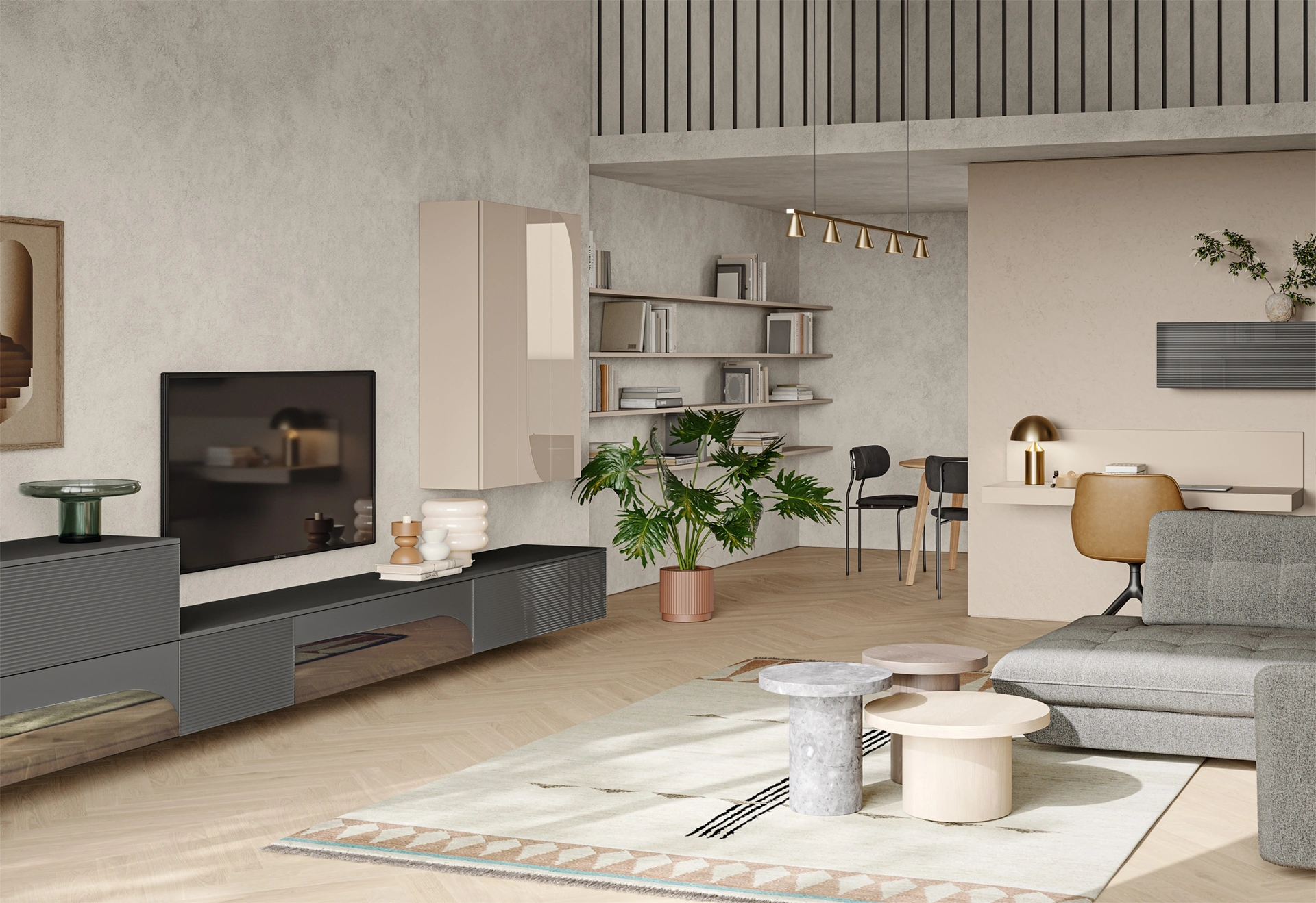 Se vuoi ultimare un living pratico e operativo dalle linee moderne, ti presentiamo la parete attrezzata Eclettica EG001 Colombini Casa.