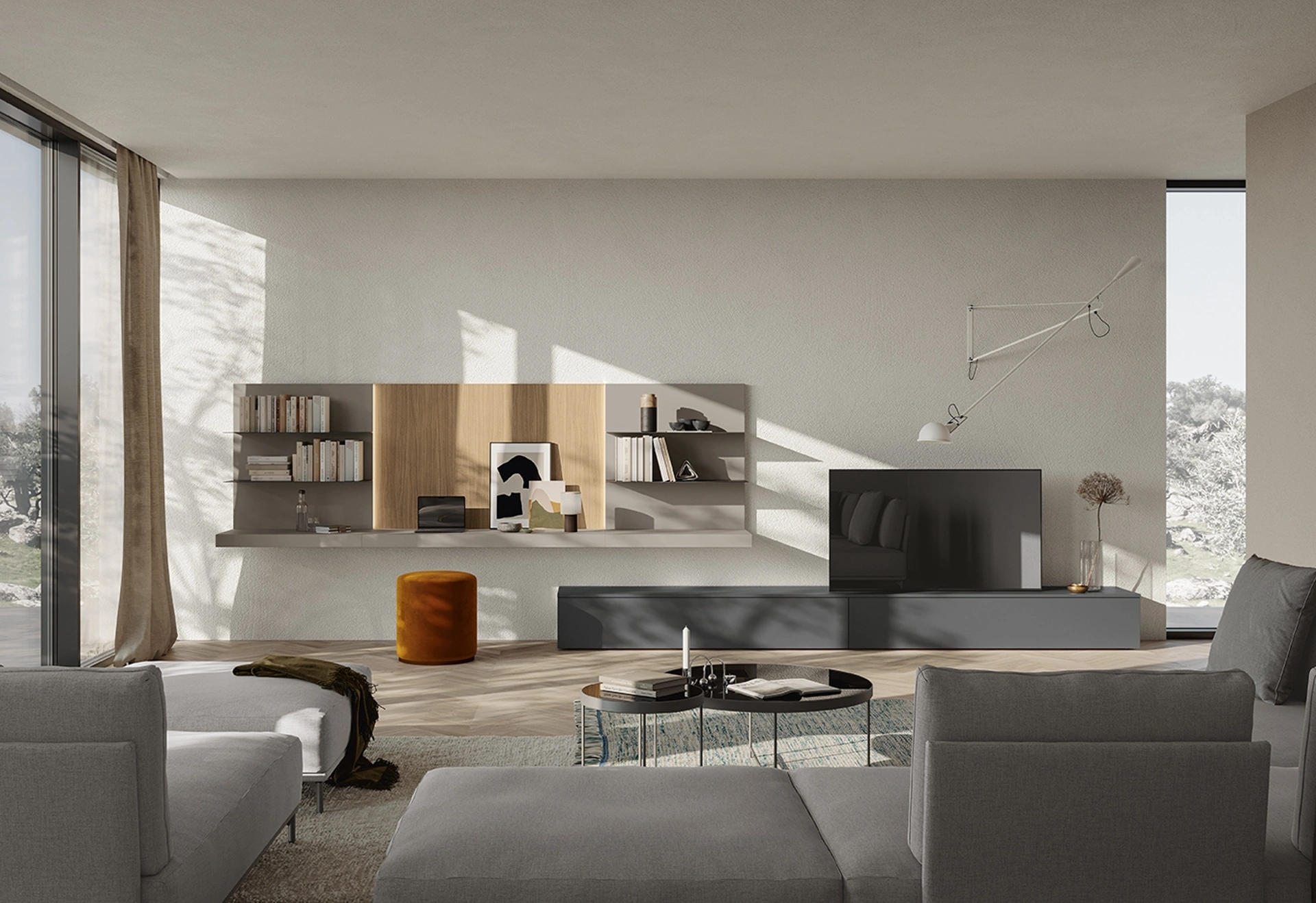 Colombini Casa mette a disposizione inediti modelli di mobili soggiorno, diversi per stile e forme, texture e elementi: scopri nel nostro showroom l'Arredamento Casa delle migliori marche. Lasciati affascinare da un ricco catalogo di mobili per la zona giorno e troverai la parete attrezzata che fa per te. I mobili soggiorno in melaminico dalle linee moderne come il modello nell'immagine sono davvero poliedrici e capaci di allestire il soggiorno ottimizzando ogni angolo. La Parete Attrezzata Night & Day L02 di Colombini Casa nell'immagine è una delle più originali soluzioni d’arredo in commercio: componibilità personalizzabile e le varie opportunità di progettazione la rendono funzionale ed esteticamente gradevole.