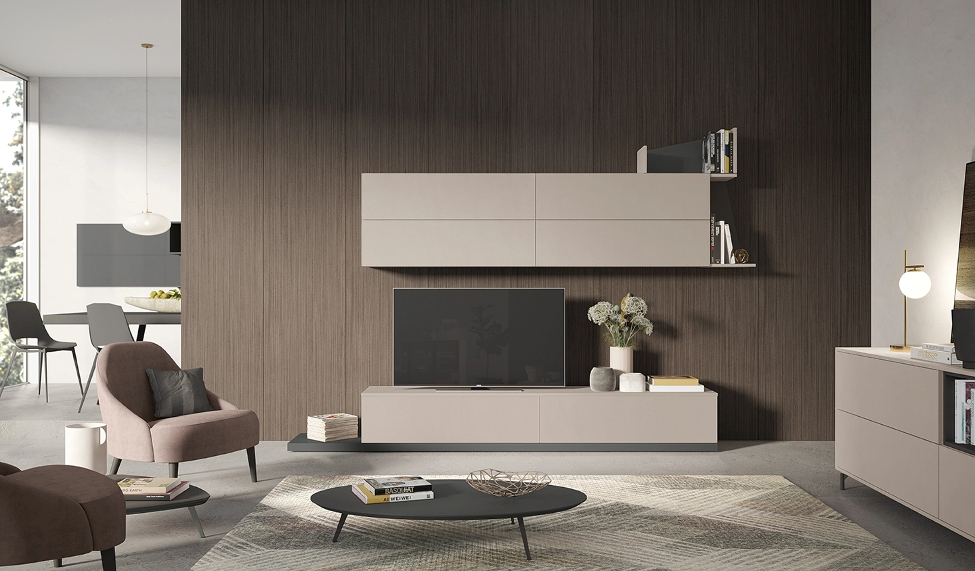 Vuoi arredare un soggiorno pratico e operativo? Ti presentiamo la parete attrezzata Night & Day L10 Colombini Casa dalle linee decise moderne.